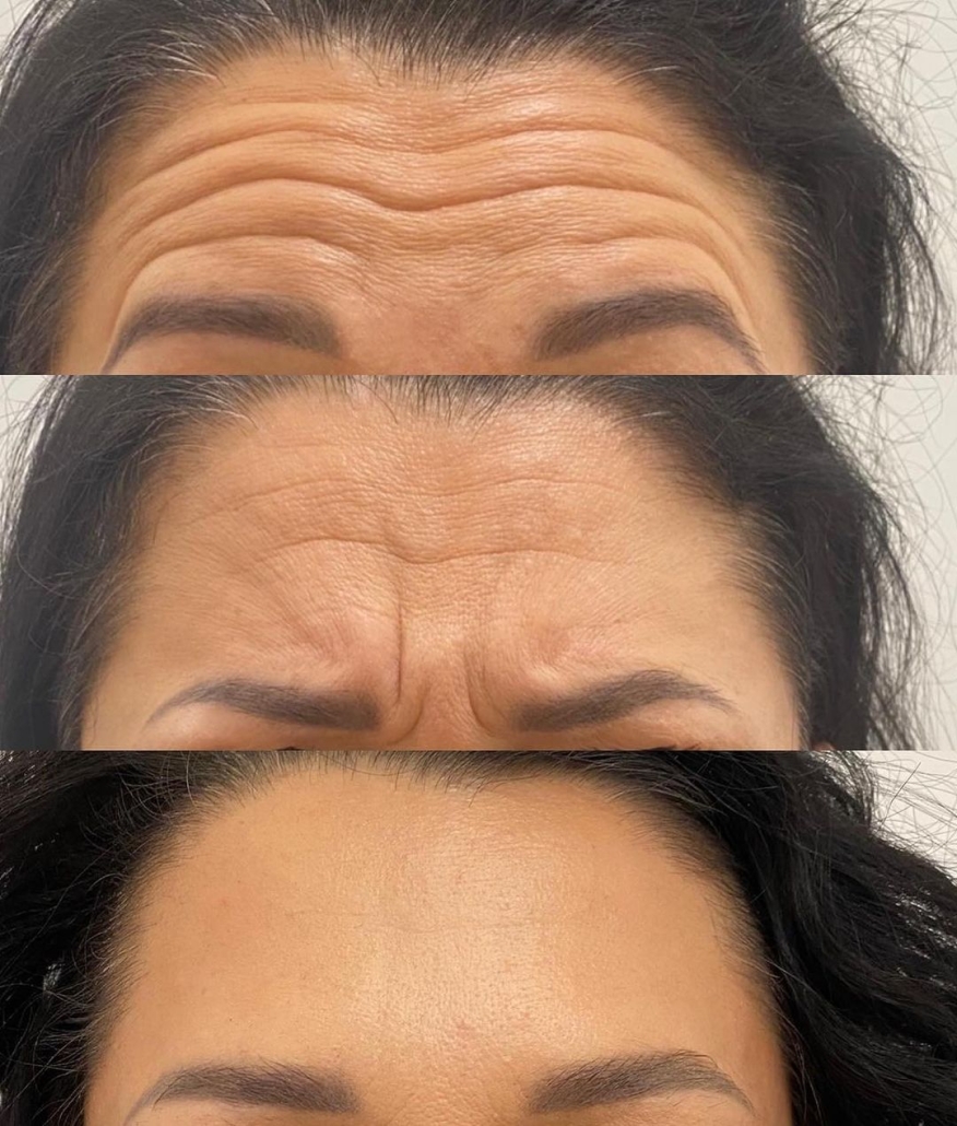 • بوتاکس با شل کردن عضلات مسئول ایجاد خطوط، به طور مؤثری چین‌وچروک‌های دینامیک مانند چروک‌های پیشانی، خطوط اخم (بین دو ابرو) و پنجه کلاغی کنار چشم را محو می‌کند.
