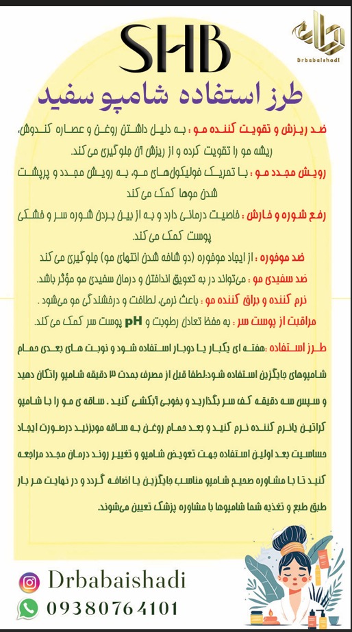 ضد ریزش و تقویت کننه مو، رویش مجدد مو، رفع شوره و خارش، ضد موخوره، ضد سفیدی مو، مراقبت از پوست سر
